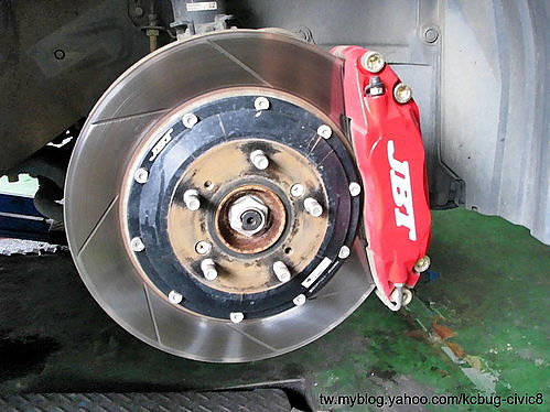 剛好遇到某位新竹的同學..正在現場偷改..而且他車上裝的就是JBT大四+330雙片碟